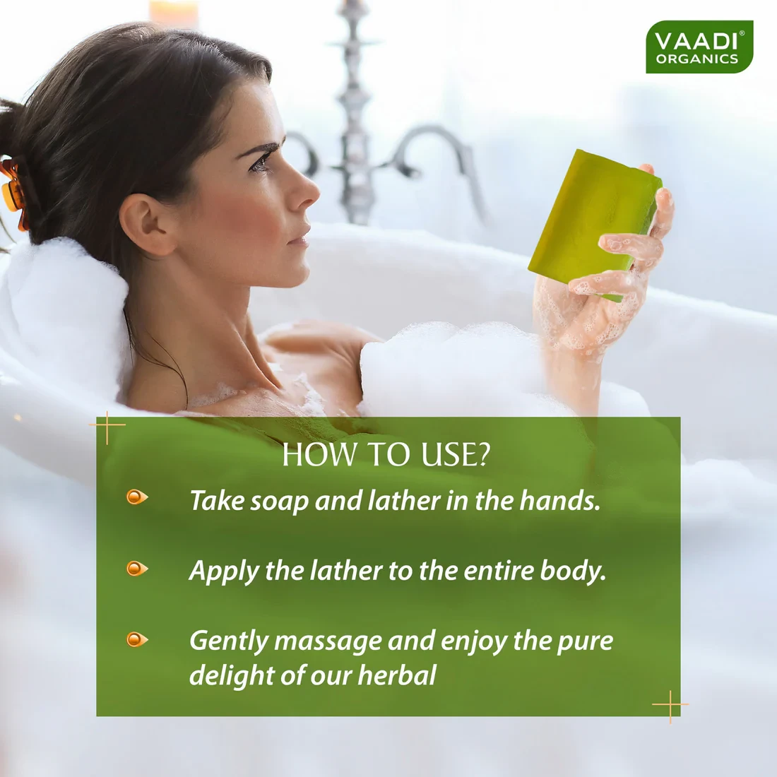 Take Soap And Lather In The Hands. Apply The Lather To The Entire Body, Gently Massage And Enjoy The Pure Delight Of Our Herbal