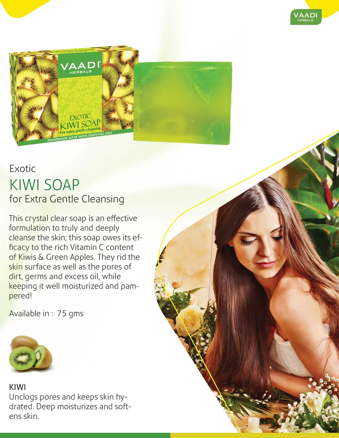 This crystal clear soap is an effective formulation to truly & deeply cleanse your skin; this soap owes its efficacy to the rich Vitamin C content of Kiwis & Green Apples. They rid the skin surface as well as the pores of dirt, germs & excess oil; while keeping it well moisturized & pampered!