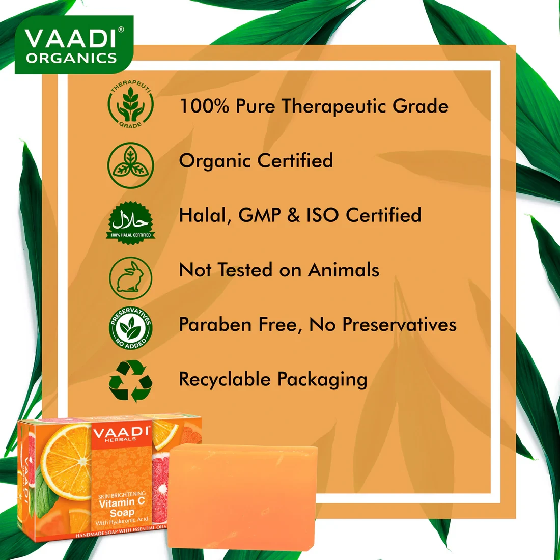 This advanced brightening and skin-smoothening Vitamin C rich soap formulated with steam distilled extract of Vitamin C rich fruits – Orange, Lemon, Kakadu Plum & Kiwi protects skin barrier. It gently cleanses your skin and its natural ingredients help protect the skin from UV damage, smoothen rough skin and improve skin texture and appearance by boosting collagen production.